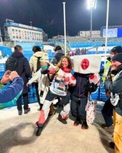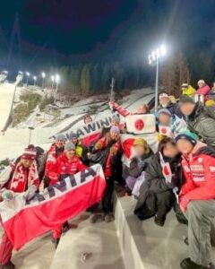 会場周辺を散策していると、なんと偶然にも日本モーグルチームの選手たちと遭遇。日の丸にサインをいただくという嬉しい出来事もありました!